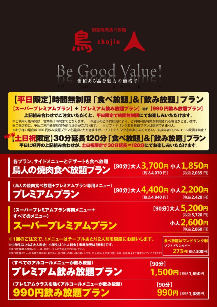 ※小人(小学生)はいずれのコースも、2,600円[税込 2,860円]+ソフトドリンク飲み放題 990円[税込 1,089円]=3,590円[税込 3,949円]
